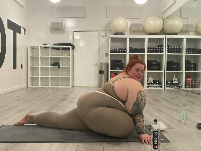 Tess Holliday thường tập pilates, giãn cơ nhẹ nhàng cùng PT với mục đích chính là cải thiện sức khoẻ tinh thần, kết nối với cơ thể.
