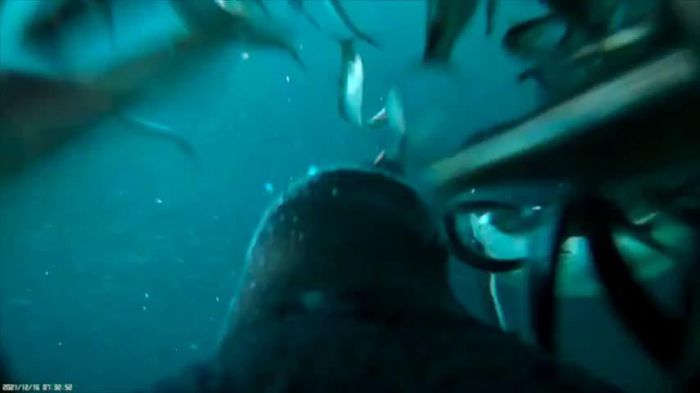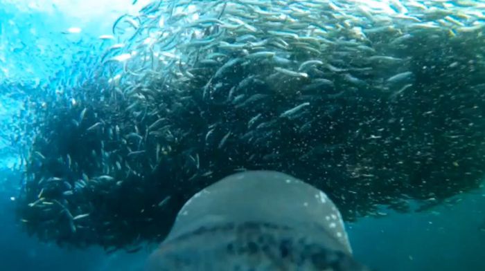 Khoảnh khắc mới lôi cuốn ghi lại cảnh một chú chim cánh cụt Gentoo đang ăn một quả bóng cá mòi khổng lồ trên vùng biển ngoài khơi Argentina.
