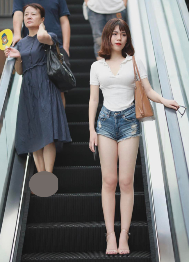 Ngoài phạm vi thang máy thì thang cuốn lại được coi là sàn catwalk dành riêng cho phái đẹp khi đến các trung tâm thương mại, siêu thị,...