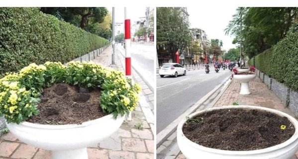Trong ảnh là các bồn hoa tết tại Hà Nội chỉ sau một đêm!