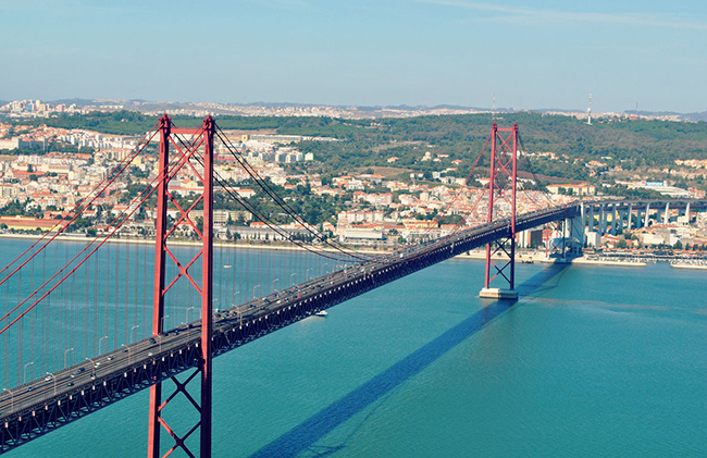 Cầu 25 de Abril, Bồ Đào Nha: Cầu 25 de Abril là một cây cầu treo nối thành phố Lisbon, thủ đô của Bồ Đào Nha, với đô thị Almada ở bờ trái của sông Tejo. Với tổng chiều dài 2.277m, đây là cây cầu treo lớn thứ 23 trên thế giới.
