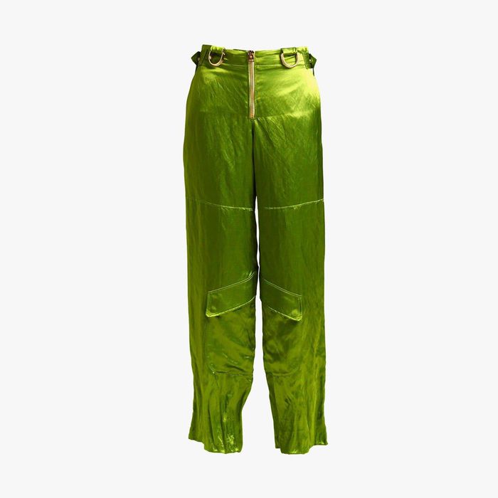 Nhờ sự lăng xê của dàn sao nổi tiếng, những món đồ bình thường cũng trở thành khoảnh khắc thời trang đáng nhớ. Rihanna, Emily Ratajkowski, Zendaya và Soo Joo Park gần đây chứng minh những chiếc quần chở hàng (cargo pants) cũng có thể giúp người mặc trông quyến rũ, Vogue bình luận. Tom Ford đã xóa bỏ quan niệm cho rằng quần túi hộp phải được làm từ chất liệu vải thô cứng bằng cách làm ra thiết kế màu xanh lá cây Soo Joo Park. Ảnh: Rich Fury.