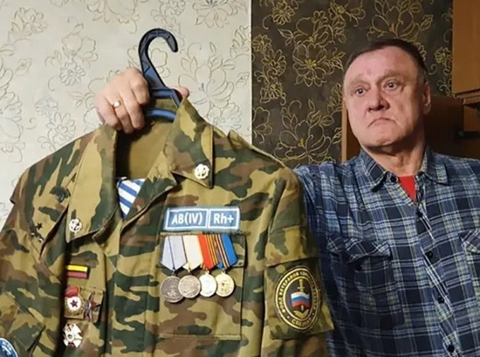 Alexander Vasiliev khoe áo đính huy chương đã được trao tặng thời còn trong quân ngũ. Ảnh: East2West