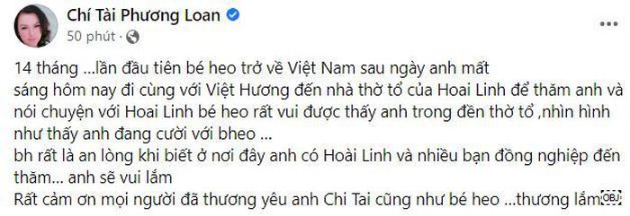 Phương Loan đến nhà thờ tổ của Hoài Linh, thắp nhang cho Chí Tài: 'Nhìn như anh đang cười với bé Heo'