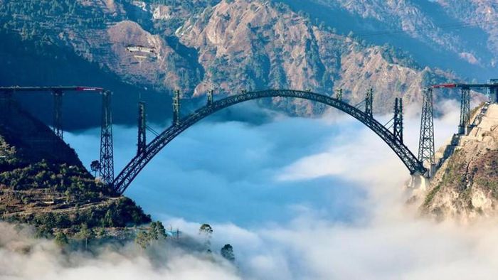 Chenab là cây cầu đường sắt cao nhất trên thế giới, với chiều cao 359 m so với mặt sông. Ảnh: Twitter