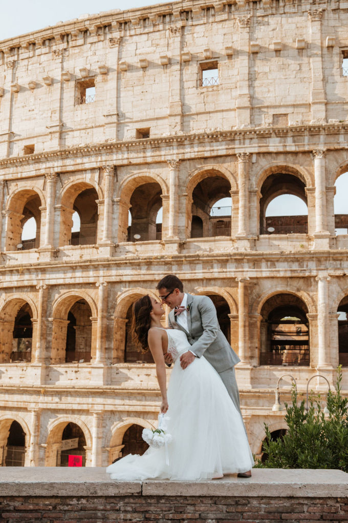 Một cặp đôi mới cưới chụp ảnh trước đấu trường Colosseum, Rome - thủ phủ vùng Lazio. Ảnh: Casale Sonnino
