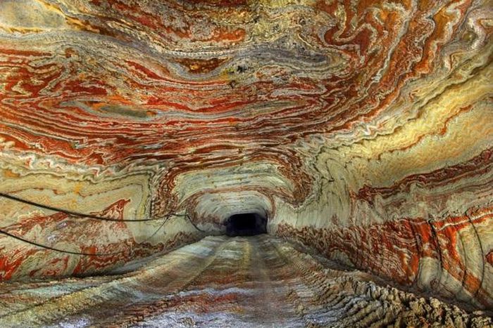 Trải qua quá trình khai thác rồi bỏ hoang, mỏ muối kỳ lạ này bị quá trình địa hóa học tác động, trên vách tường và trần mỏ có những họa tiết hoa văn đẹp lạ lùng, hệt như được tạo ra bởi những nghệ sĩ tài hoa bậc nhất thế giới.