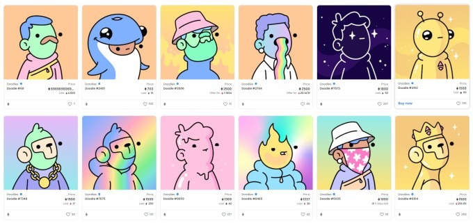 Một số NFT trong bộ sưu tập Doodles được rao giá hàng nghìn ETH, tương đương hàng triệu USD.