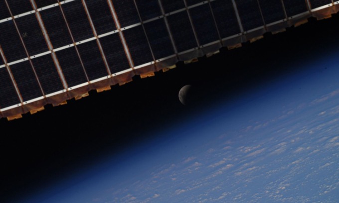 Mặt Trăng trong nguyệt thực nhìn từ trạm ISS. Ảnh: ESA