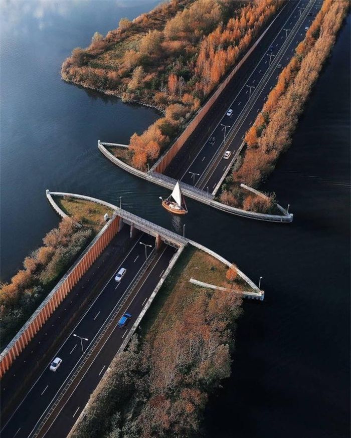 Cây cầu được mô tả là con đường tuyệt vời nhất trên thế giới. Và dựa trên những hình ảnh chụp từ trên cao, chẳng ai có thể phản đối được lời ca tụng này dành cho Veluwemeer Aqueduct.