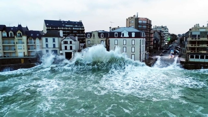 Saint Malo là một cảng biển có lịch sử lâu đời tại Pháp, nằm bên eo biển Manche. Theo BBC, nơi đây nổi tiếng là điểm đến có thủy triều cao nhất châu Âu, với hệ thống đê chắn sóng được miêu tả "có cũng như không". Lý do là đê hầu như không ngăn được những con sóng lớn xô vào các nhà dân nằm cách bờ biển hơn 2 km. Khi nhìn cảnh này, không ít du khách đã ví Saint Malo như phim trường của một bộ phim nói về ngày tận thế.