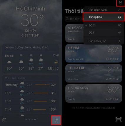 Cài đặt này phù hợp với thông báo thời tiết khắc nghiệt có sẵn trên ứng dụng Thời tiết.