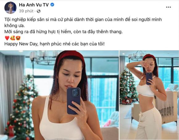 Không chỉ có thế, nữ siêu mẫu còn đăng thêm loạt ảnh diện đồ tập khoe trọn thân hình siêu chuẩn và không quên "dằn mặt" những người chuyên đi soi mói ngoại hình của người khác rằng: "Tội nghiệp kiếp sân si mà cứ phải dành thời gian của mình để soi người mình không ưa. Mới sáng ra đã hừng hực tị hiềm, còn ta đây thênh thang. Happy New Day, hạnh phúc nhé các bạn của tôi!".