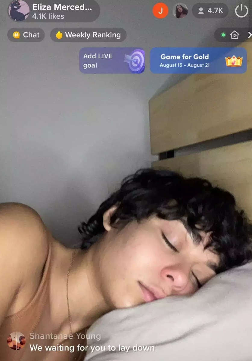 Eliza Diaz phát trực tiếp giấc ngủ lên mạng xã hội vào mỗi tối. Ảnh chụp màn hình