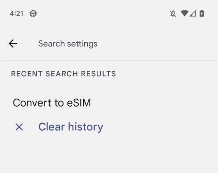Theo đó, trong ứng dụng Settings phiên bản mới, chuyên gia Android Mishaal Rahman đã phát hiện ra một tùy chọn có tên “Convert to eSIM”. Tùy chọn này có vẻ như vẫn chưa hoàn thiện vì xuất hiện trong giao diện tìm kiếm thay vì ở menu riêng biệt. Mishaal Rahman cho biết Android 14 rằng cũng chuẩn bị sẵn một tùy chọn ẩn khác để chuyển eSIM giữa các thiết bị khác nhau.