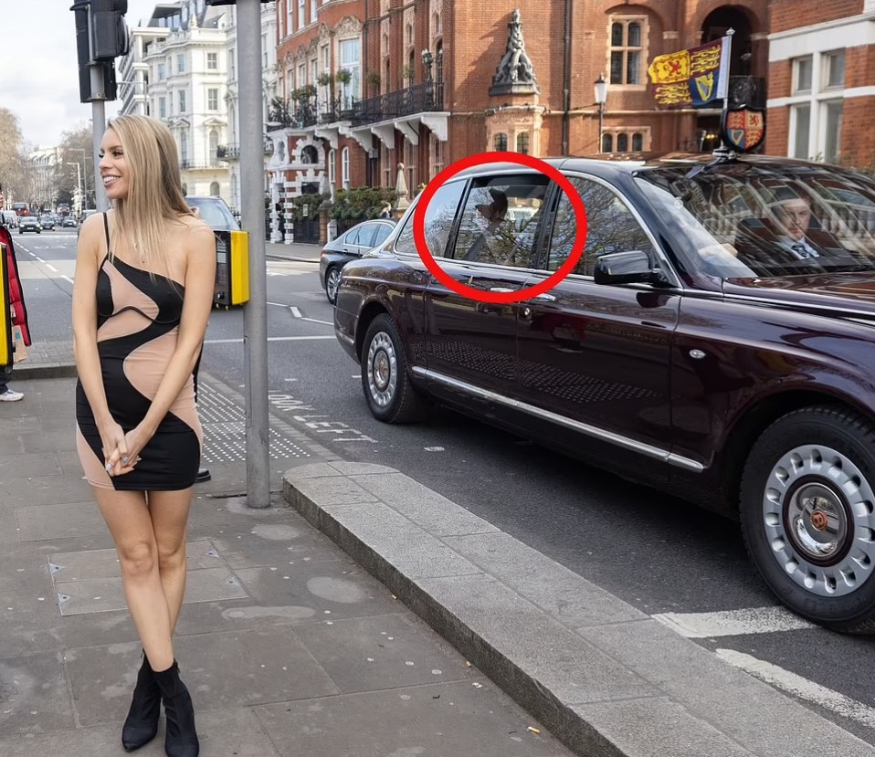 Ê-kíp chụp được Alicia Watts khi xe của vua Charles lướt qua.