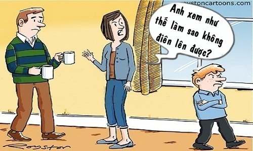 Ăn xong nhìn thấy vợ vẫn đang đánh con trai, không nhìn nổi nữa, nói: