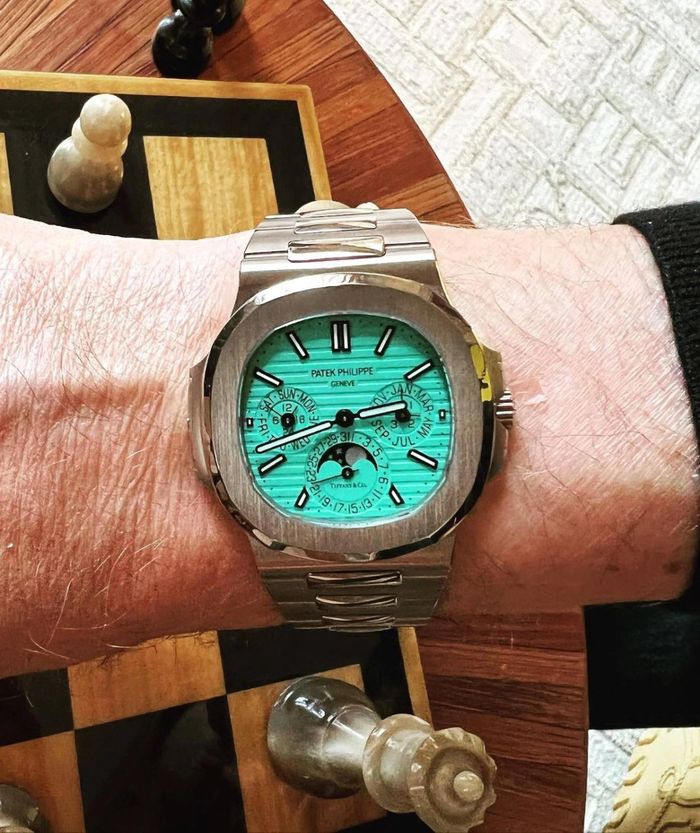 Trong danh sách những người giàu nhất thế giới của Forbes, Bernard Arnault đứng đầu với khối tài sản 225,9 tỷ USD. Giám đốc điều hành tập đoàn LVMH sở hữu một chiếc Tiffany-Blue Patek Philippe Nautilus Perpetual 5740 cực hiếm, theo Highsnobiety. Mẫu đồng hồ là kết quả của sự hợp tác giữa Tiffany & Co. và Patek Philippe. Tháng 12/2021, một mẫu đồng hồ Tiffany-Blue Patek Philippe Nautilus Perpetual 5740 được bán đấu giá 6,5 triệu USD, gấp 120 lần giá bán lẻ. Ảnh: frederic.arnault.