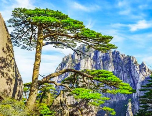Trên núi Hoàng Sơn có rất nhiều cây thông quý hiếm nhưng cây thông nổi tiếng nhất chính là cây Thông đón khách kể trên.