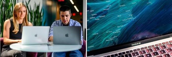 Hai chuyên gia Kate Duffy và Thomas Vandal làm việc mô hình trên dự báo thời tiết AI Zeus
