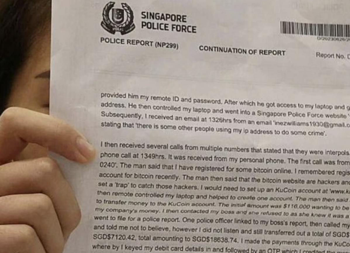 Nhưng người phụ nữ 35 tuổi, họ Li, đã bị lừa 18.000 SGD (hơn 300 triệu đồng), không nhờ rằng chính người được gọi là cảnh sát kia mới là kẻ dàn dựng trò lừa đảo.