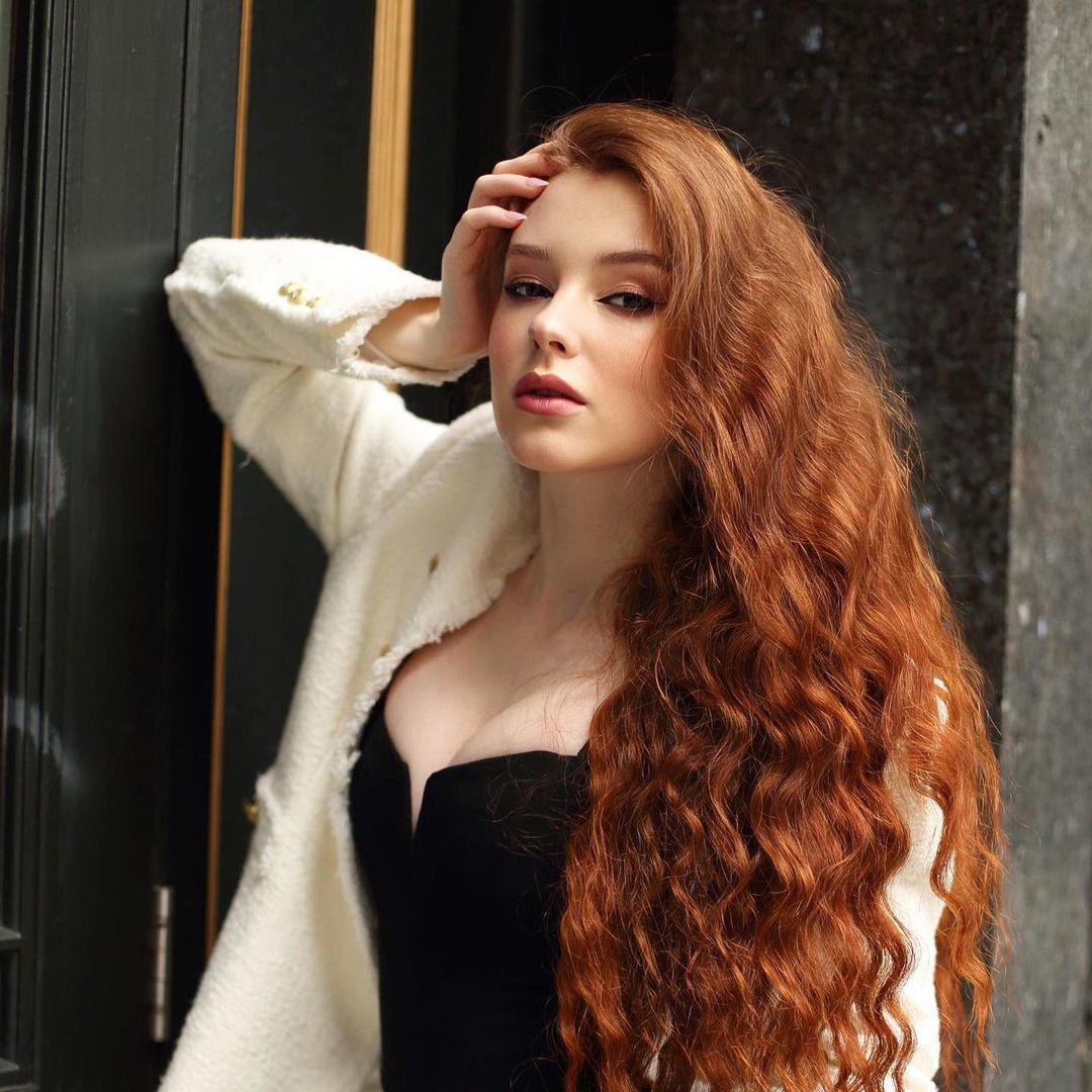 Trên thực tế, chỉ 1-2% dân số toàn cầu sở hữu mái tóc đỏ tự nhiên. Ở Bắc Âu và Tây Âu, tỷ lệ này cao hơn các vùng khác trên thế giới. Đặc điểm cơ thể đặc biệt này giúp cô trông thu hút hơn. Thời gian đầu mới vào nghề, cô nàng giữ nguyên mái tóc đỏ đậm làm nét đặc trưng, tuy nhiên, thời gian gần đây để phù hợp với nhiều kiểu concept trang phục cũng như muốn làm mới hình ảnh bản thân, cô cũng có sự thay đổi màu sắc tóc sang vàng nhạt, hồng,... trong một thời gian ngắn. Mái tóc dài qua eo, uốn xoăn buông lơi được cô chăm sóc kỹ càng.