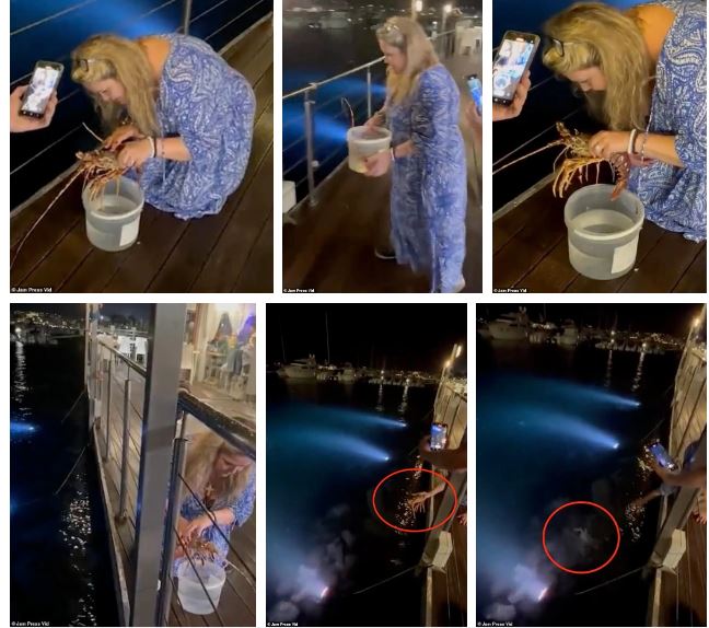 Nhưng vào lúc con tôm hùm sống được mang lên bàn của cặp đôi, những người có mặt tại nhà hàng đã không thể tin vào mắt mình khi nữ du khách quyết định thả nó xuống nước qua lan can kim loại của nhà hàng, không để cho các đầu bếp có cơ hội chế biến.