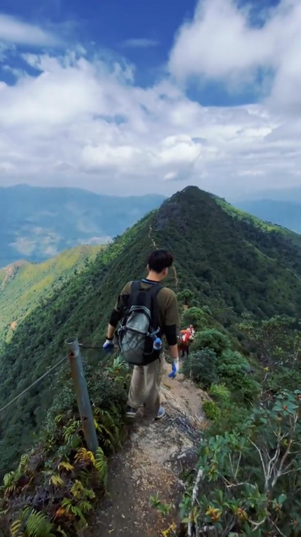 Có thể thấy, trong clip là một con đường nhỏ xíu trên đỉnh núi, 2 bên là vách núi dựng đứng trông vô cùng đáng sợ. Mặc dù trên đường đi đã có một hàng dây được buộc vào những cây cọc sắt để làm chỗ bám, thế nhưng nhìn vẫn khiến người xem có chút "đứng tim".