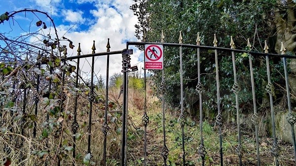 Cổng vào "ngôi nhà ma ám" treo biển cấm.