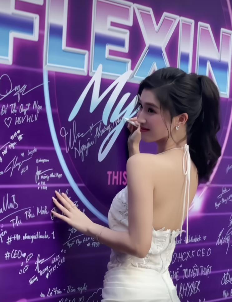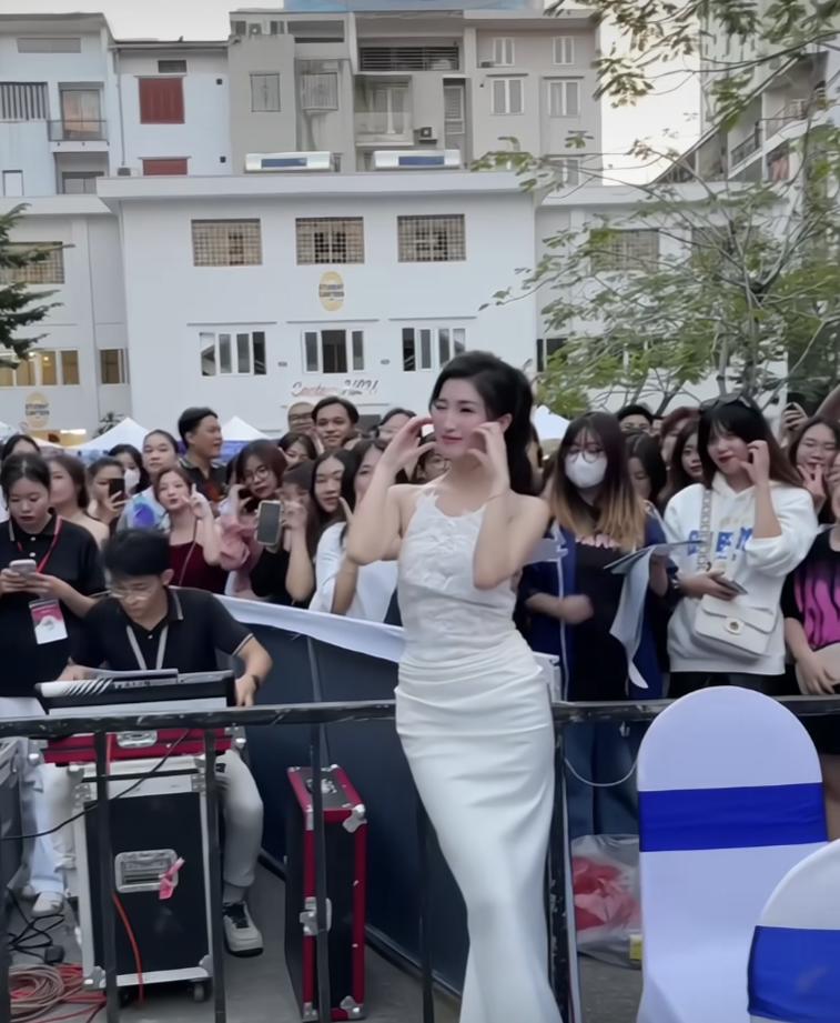 Trở về trường, Phương Nhi gây bất ngờ với nhan sắc ngày càng thăng hạng. Trong thiết kế váy trắng kín đáo, không kém phần thanh lịch, nàng hậu "sáng bừng" với visual "tiên tỷ", mang đậm nét Á Đông. Nàng hậu còn thoải mái tươi cười rạng rỡ trước đám đông sinh viên của trường.