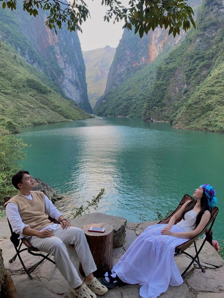 Ngân cho biết, đi Hà Giang, mọi người đừng quá đặt trọn niềm tin vào Google Map. “Đoạn t́m đường ra sông Nho Quế, chúng ḿnh bị lạc vào đường cùng, nhưng may mắn khám phá được một điểm sống ảo cực đẹp, cũng là view sông Nho Quế nhưng với một góc khác”, Ngân kể lại.