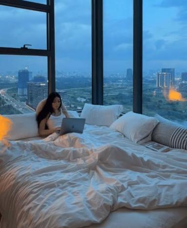 Đối với những ai mê nhà cửa, căn phòng ngủ ngắm view Bitexco tại TP.HCM của Lê Hồng Oanh không còn xa lạ gì. Căn phòng này từng gây bão trên MXH với những clip time-lapse hàng trăm triệu lượt xem. Chính chủ chẳng cần làm gì, cứ nằm dài trên giường đọc sách, làm việc,... cũng đủ tạo cảm giác thoải mái, thư giãn.