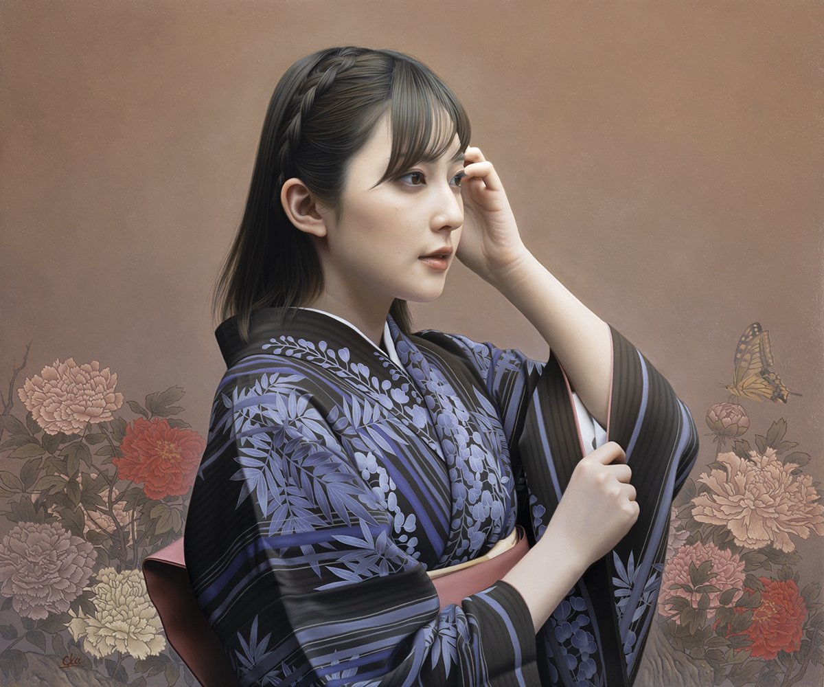 Các thiếu nữ Nhật trong trang phục kimono được họa sĩ Yasutomo Oka khắc họa chân thực, sống động từng chi tiết.