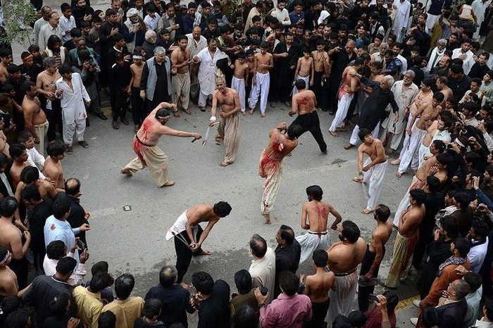 Tự đánh mình đến chảy máu là một phần nghi lễ quan trọng của người Hồi giáo dòng Shiite, diễn ra vào tháng Thánh lễ Muharram để bày tỏ lòng tôn kính đối với Thánh Imam Hussein
