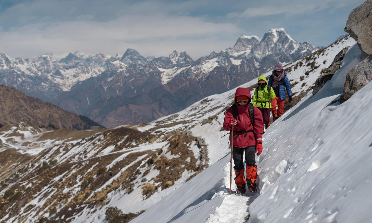 Ngày 17/2, trekking đến đỉnh đèo Kuari là đoạn đường khó khăn nhất trong hành trình. Trên quãng đường khoảng 7 km, khung cảnh thay đổi từ thảm cỏ khô ở dưới thấp đến những sườn núi tuyết phủ trắng xóa khi lên cao, bao quanh là những dãy núi hùng vĩ cũng phủ trắng tuyết.