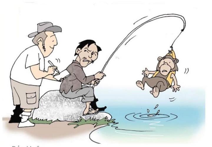 Có anh Tây đang học tiếng Việt. Hôm nọ, ghé xem mấy người đang câu cá. Một người làu bàu: