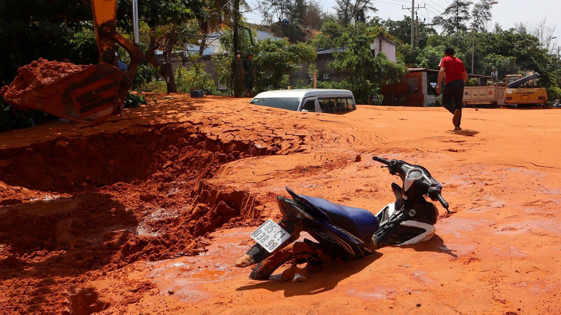BÌNH THUẬN, Việt Nam (NV) – Một trận lũ cát đỏ bất ngờ từ đồi cao ập xuống khu du lịch ở Mũi Né, thành phố Phan Thiết, vùi lấp nhiều xe cộ, nhà cửa.