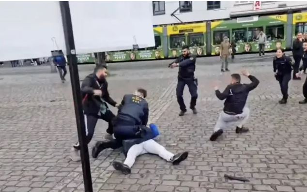 Đoạn video quay tại hiện trường vụ đâm dao được chia sẻ trên mạng xã hội cho thấy đối tượng - một người đàn ông có râu, đeo kính - đã tấn công một người đàn ông khác ở gần một chiếc xe tải có dán các áp phích ở quảng trường. Khi mọi người chạy đến giúp đỡ, nạn nhân cố gắng thoát khỏi kẻ tấn công nhưng tiếp tục bị truy đuổi và bị đâm.
