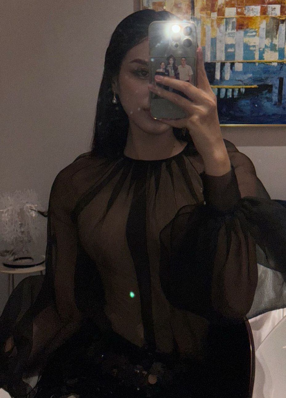 Mới đây, người đẹp tiếp tục được khen khi thả dáng trong kiểu áo xuyên thấu, khoe được nét đẹp cơ thể, Trang phục đơn giản nhưng cực kỳ hài hòa. Mang đến cái nhìn mới mẻ cho chân dài. Thiết kế tông đen càng làm tăng lên sự thú vị cho hình ảnh của cô.