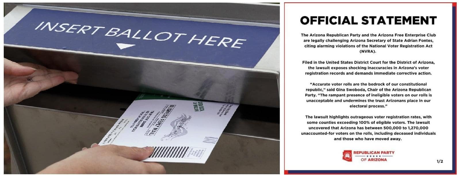 -Đảng cộng hoà nộp đơn kiện thống đốc Arizona sau khi khám phá ra từ 500,000 đến 1,270,000 phiếu bầu zỡm. Hình.