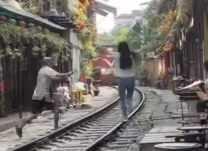 Mạng xã hội xuất hiện đoạn video ngắn ghi lại hình ảnh một cô gái chạy ra giữa đường ray tàu hỏa để tạo dáng chụp ảnh khi tàu đang lao đến.
