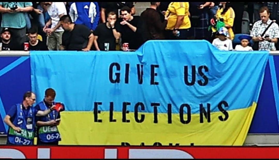 -Dân Ukraine cầu cứu. Trong một trận đá banh với Slovakia hôm qua ở Kiev người ta thấy một biểu ngữ xuất hiện ” Trả lại bầu cử cho chúng tôi “. Chắc các bạn hiểu họ muốn nói gì.