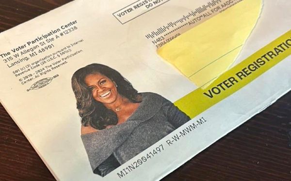 -Hình của Michael Obama được in trên giấy ghi danh cử tri ở Michigan.