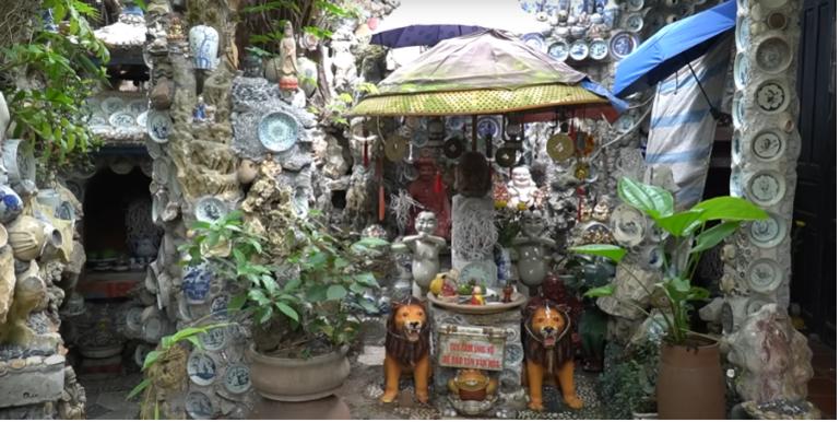 Về thăm xã Chấn Hưng, huyện Vĩnh Tường, tỉnh Vĩnh Phúc, hỏi nhà ông Nguyễn Văn Trường - bà con làng xóm đều biết. Căn nhà của ông Trường nổi bật giữa làng bởi hàng nghìn chiếc bát đĩa được đắp nổi khắp xung quanh, từ cổng, cầu thang, bờ tường cho tới các phòng.