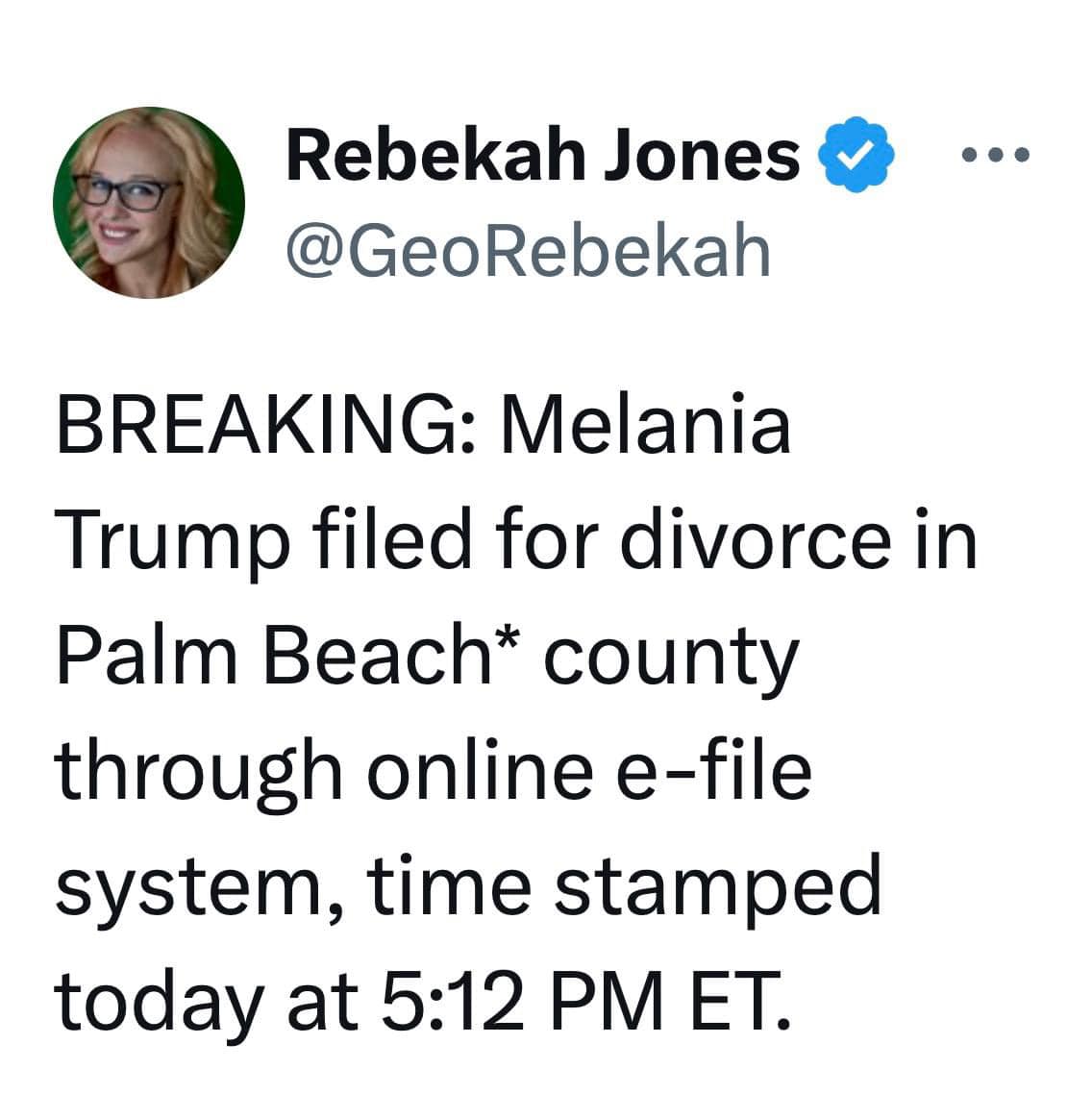 Tin từ nhà báo Andy Ngo, Rebekah Jones là một tài tử sáng chói của đảng dân chủ. Cô kiếm bộn tiền bằng cách loan những tin xạo, láo. Tin bà Melania ly dị kèm với một tin của báo Newsweek đã được chỉnh sửa, giúp cô kiếm bộn bạc từ những người dân chủ.