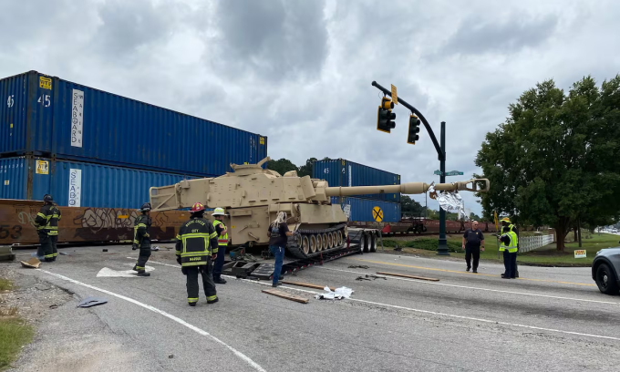 Đoàn tàu hàng húc trúng xe rơ-moóc chở pháo tự hành M109 bị mắc kẹt ở nút giao tại bang Nam Carolina, không có thương vong trong sự việc.