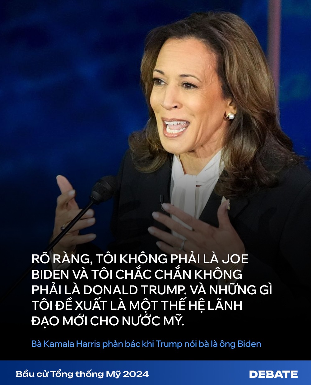 Trước khi kết thúc cuộc tranh luận, bà Harris nói: "Tôi không phải Joe Biden và cũng không phải Trump. Tôi đang đại diện cho một thế hệ lãnh đạo mới".