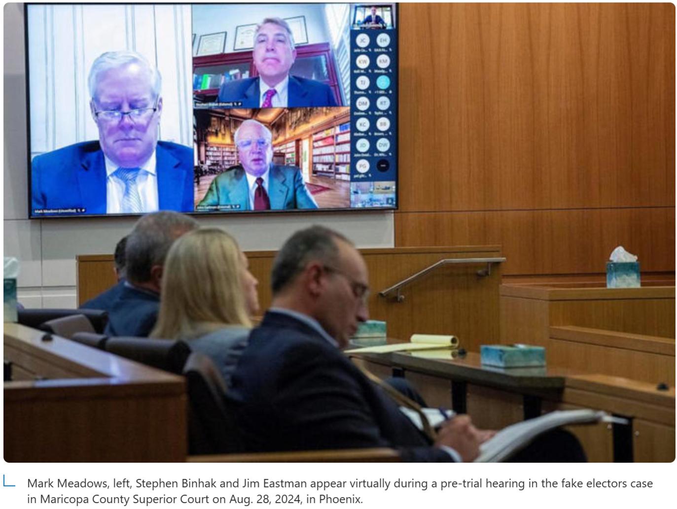 Meadows, cùng với 17 người khác, đã bị buộc tội tại Arizona về tội làm giả và âm mưu liên quan đến cáo buộc cố gắng lật ngược kết quả cuộc bầu cử năm 2020 tại tiểu bang này. Ông đã không nhận tội.