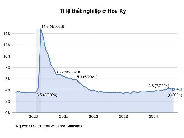 Tỷ lệ thất nghiệp trong tháng 9 giảm đối với mọi nhóm sắc tộc, bao gồm cả nam và nữ. Tỷ lệ thất nghiệp của khối công nhân da đen giảm xuống 5.7% và khối công nhân gốc Tây Ban Nha là 5.1%. Trong khi đó, mức lương lại gia tăng mạnh mẽ khoảng 0.4% so với tháng 8. Lương giờ trung b́nh tăng 4% trong năm 2024 tới mức $35.36 / giờ.