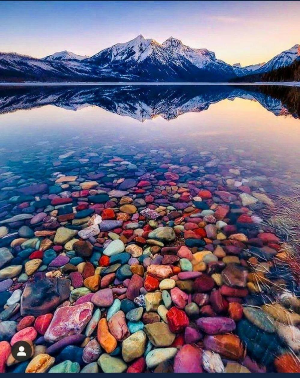 Hồ McDonald ở tiểu bang Montana, Mỹ nổi tiếng bởi những viên đá, sỏi đủ màu sắc phủ kín đáy hồ. Nước hồ trong veo nên khách du lịch có thể dễ dàng ngắm "bức tranh" rực rỡ này.